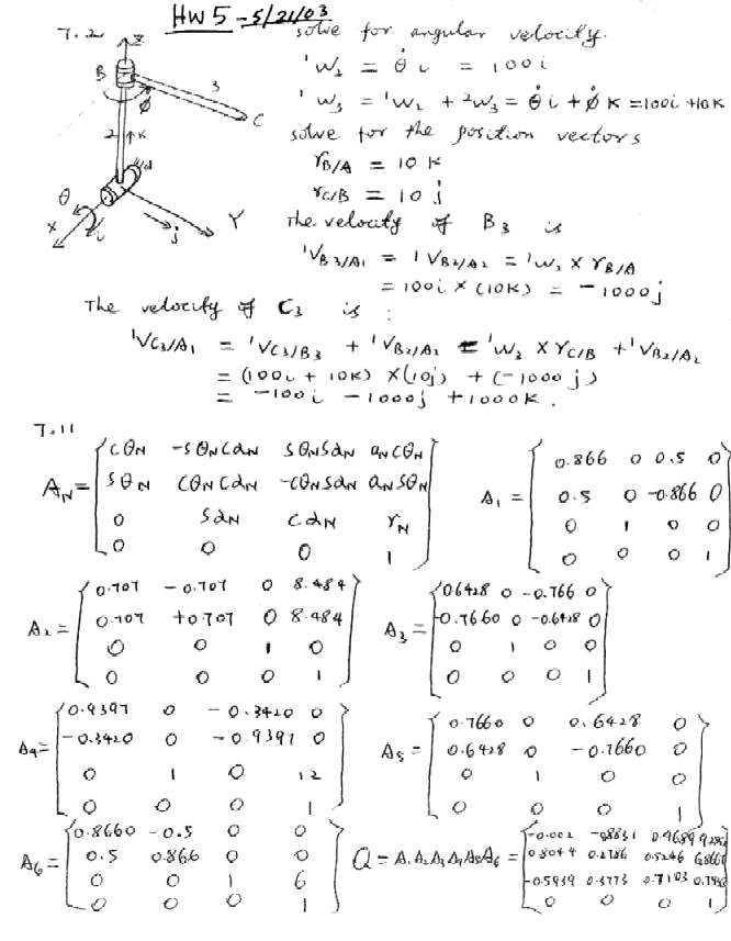 Instructor: Dr. Sam Kassegne (sk@digitaladdis.com) Brief Course Introduction Theory of Machines and Mechanisms is a study of linear and angular displacements, velocities, accelerations of points and bodies, and the static and dynamic forces required for the proper design of mechanical linkages, cams, and geared systems. The course covers both static force analysis of mechanisms and dynamic analysis of linkages. Lecture Notes (PDF files) Lecture 15 - May 28, 2003. [Copies are also available at Engineering Copy Center as of 5/27/03] Homework Solution Sets - HW 1, HW 2, HW 3, HW 4, HW 5 HW 6 Solutions for Chapters 10 & 11 Exercise Problems [6/7/03]. Mid-Term Exam Mid-Term Exam Results - May 12, 2003. FINAL EXAM [Gears, Gear Trains, Static Force Analysis, and Robotics]. Final Exam Scores. [The Final grade should be obtained through official UCI channels. 20%HW, 30%Midterm & 50% Final Exam]. Time: 12:00 AM – 1:50 PM Place: SE2 1304 Office Hours: Tuesday 3:00 – 4:30 PM [E3108 – Engineering Gateway Building] |